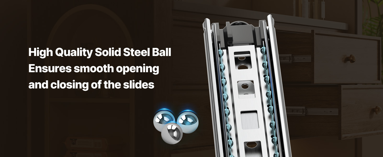 With an excellent 100lbs weight capacity, these slides ensure a reliable storage experience. Made of 1.2mm thick galvanized steel, they feature smooth, quiet operation, full three-stage extension, and effortless glide, offering the perfect combination of superior quality and ease of use.