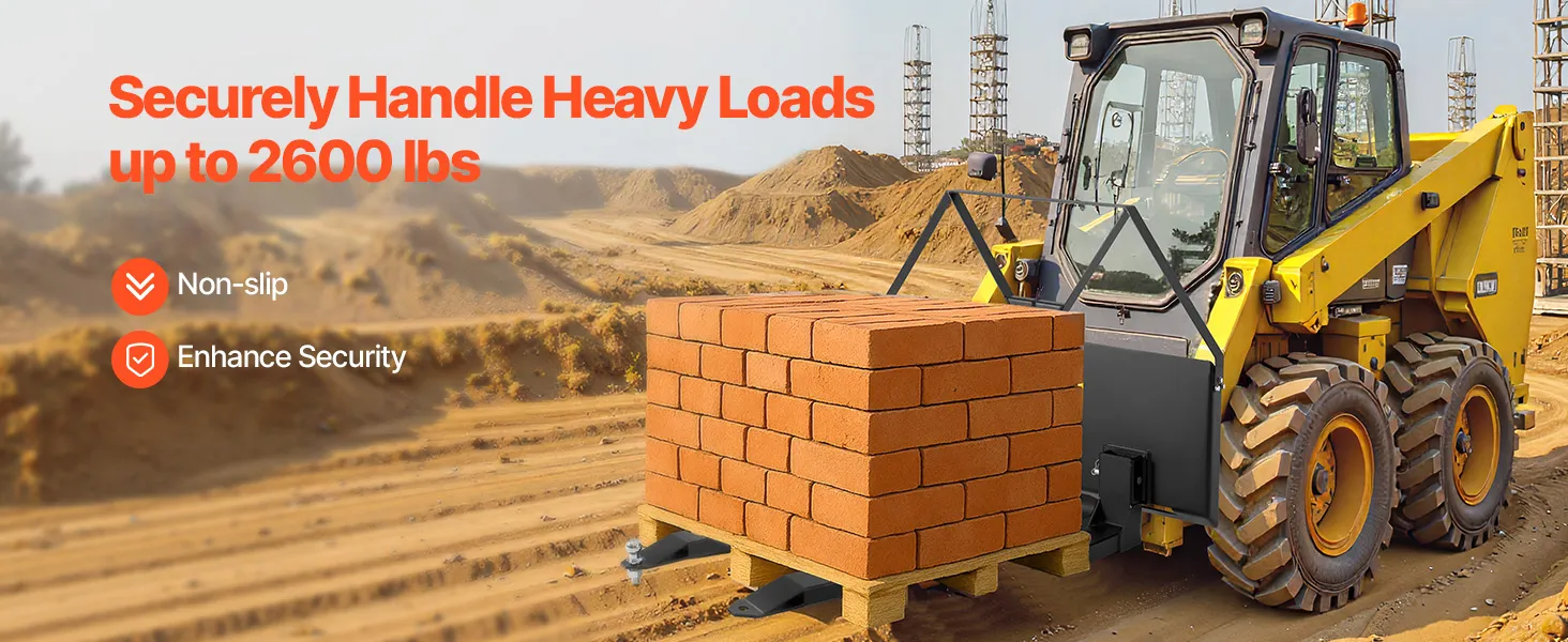 • 2600 lbs Strong Load Capacity: Our steel skid steer forks support up to 2600 lbs (mounting plate size: 45.7 x 5.7 x 32.4 in; total fork length: 48 in). Ideal for farm, warehouse, and short-distance transport, with 21-inch spacing and a guardrail to prevent item loss