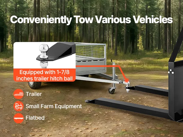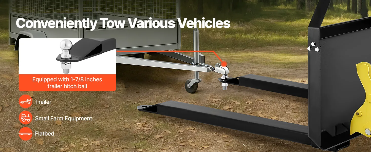 • Versatile Towing Function: The 1-7/8 inch trailer ball connector of the pallet fork frame makes it easy to extend your towing capabilities. Move trailers, flatbeds, or small equipment effortlessly with this flexible, convenient design