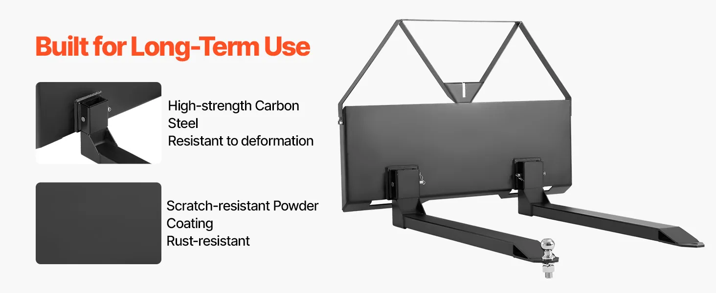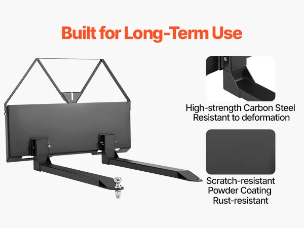 • Reliable, Durable Steel Construction: Built to last! Our heavy-duty skid steer pallet forks and mounting plate are made from high-strength carbon steel, coated to resist corrosion and rust. Enjoy years of reliable, tough performance