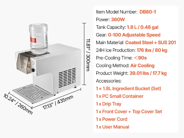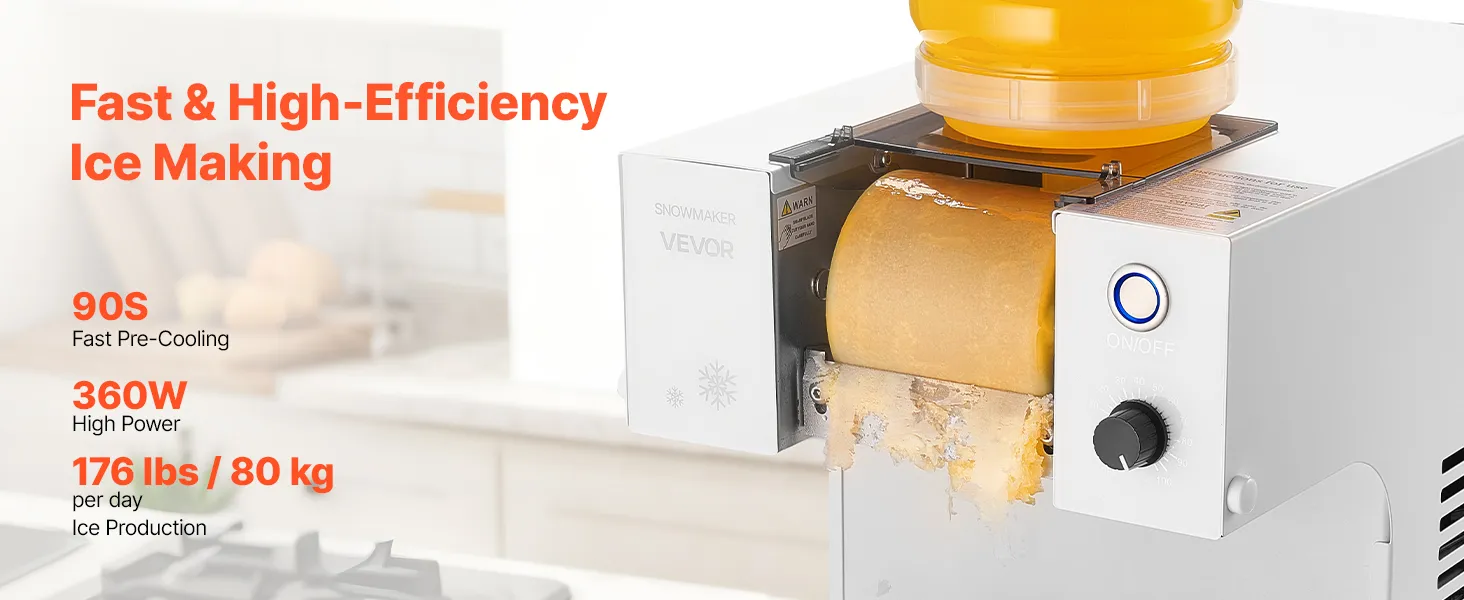 VEVOR Snowflake Ice Machine, 80KG/24H Snowflake Ice Maker, Ice-Shaver Machine with Stainless Steel Blade, Electric Snow Cone Maker with 1.8L Tank, 90S Fast Pre-Cooling, for Home & Small Gatherings