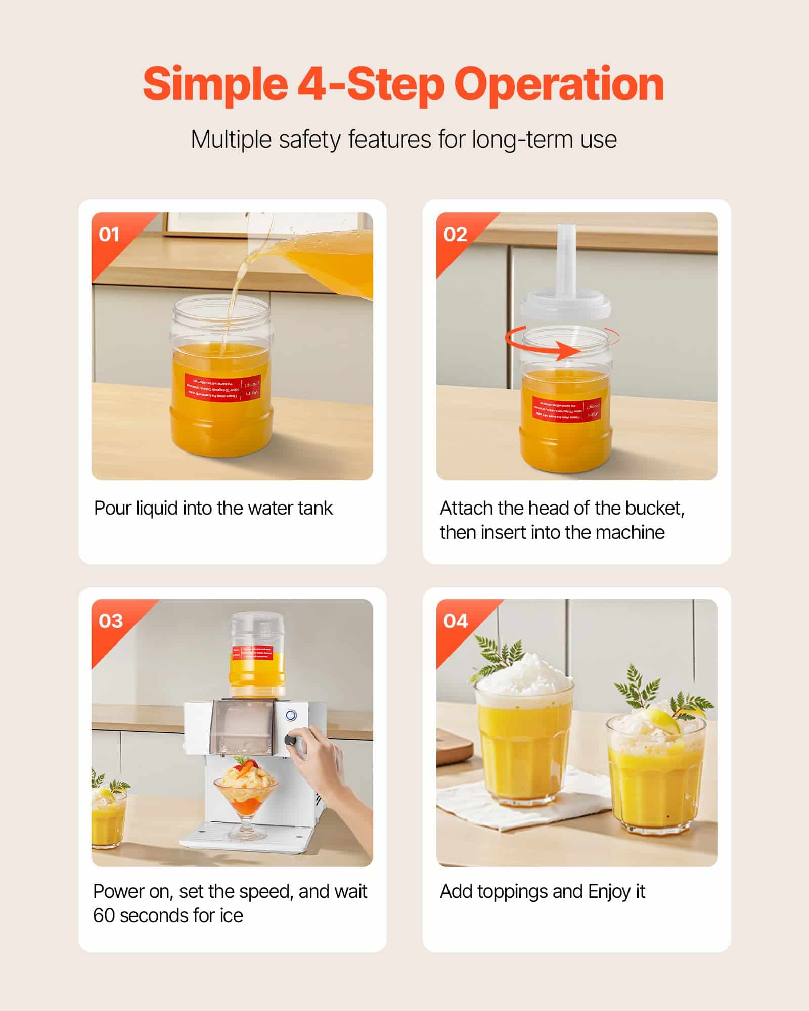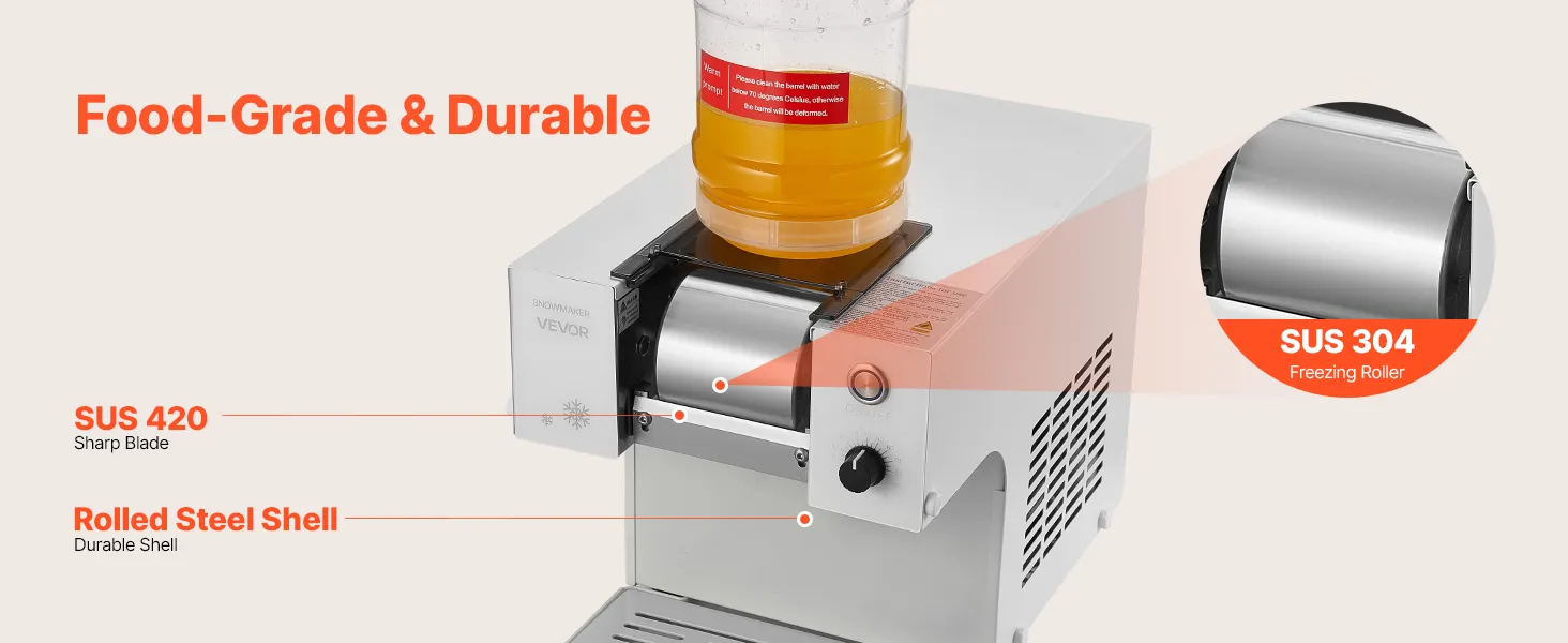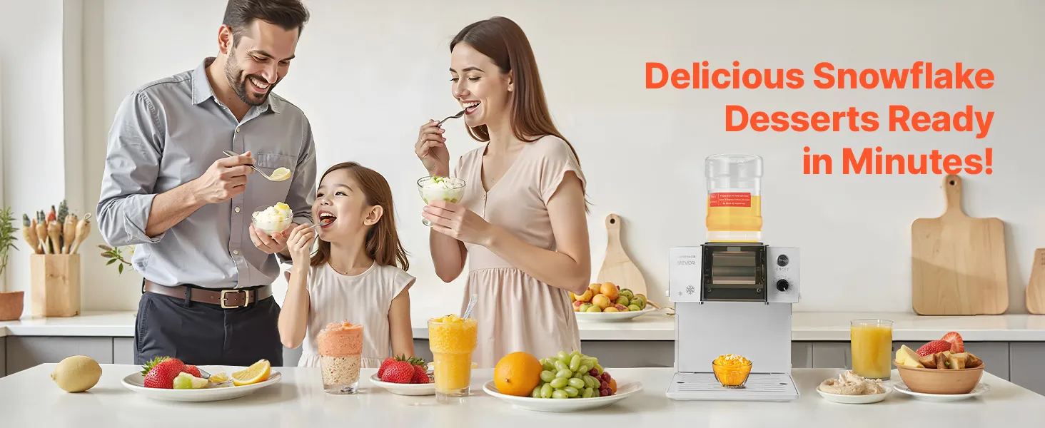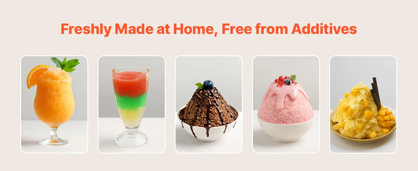 This snowflake ice maker allows you to easily create smooth, fluffy ice desserts and drinks at home using water, milk, juice, soda, etc, making it ideal for family use, small gatherings, or entertaining friends, while its compact and user-friendly design ensures fun and convenient preparation of refreshing treats.