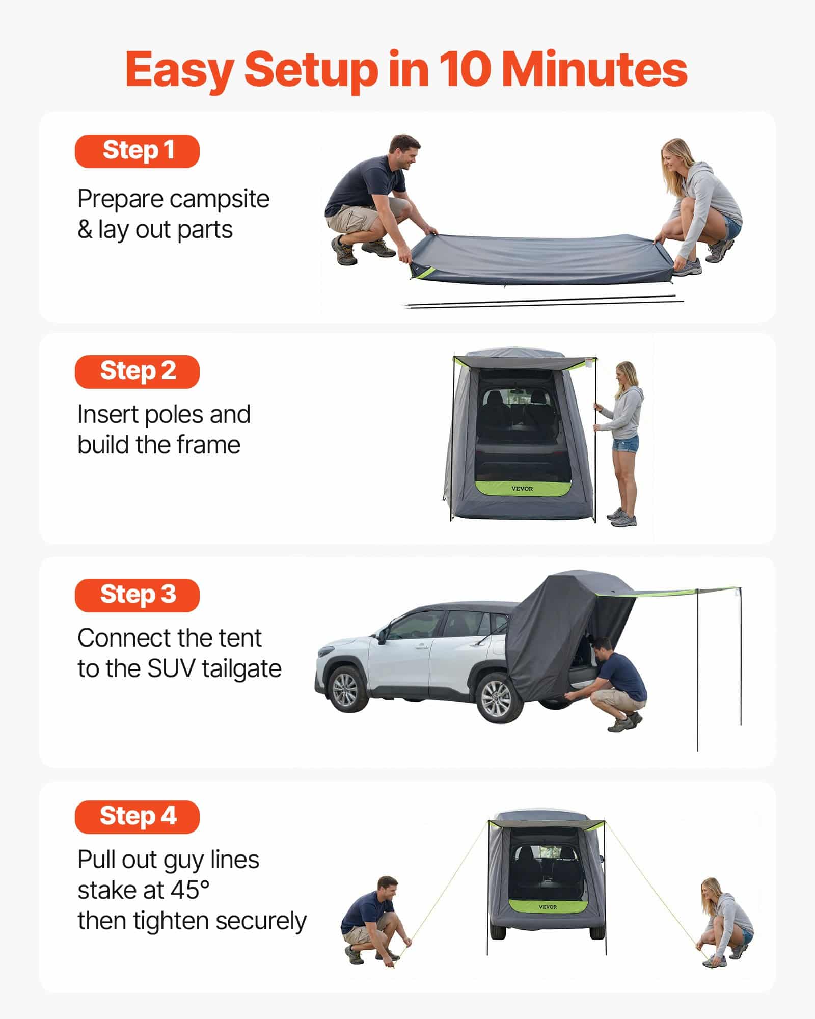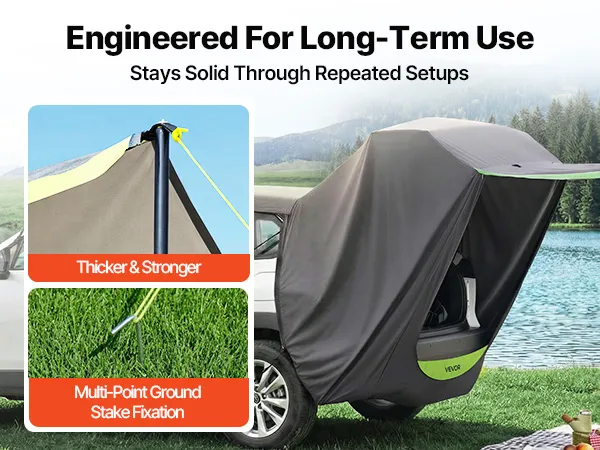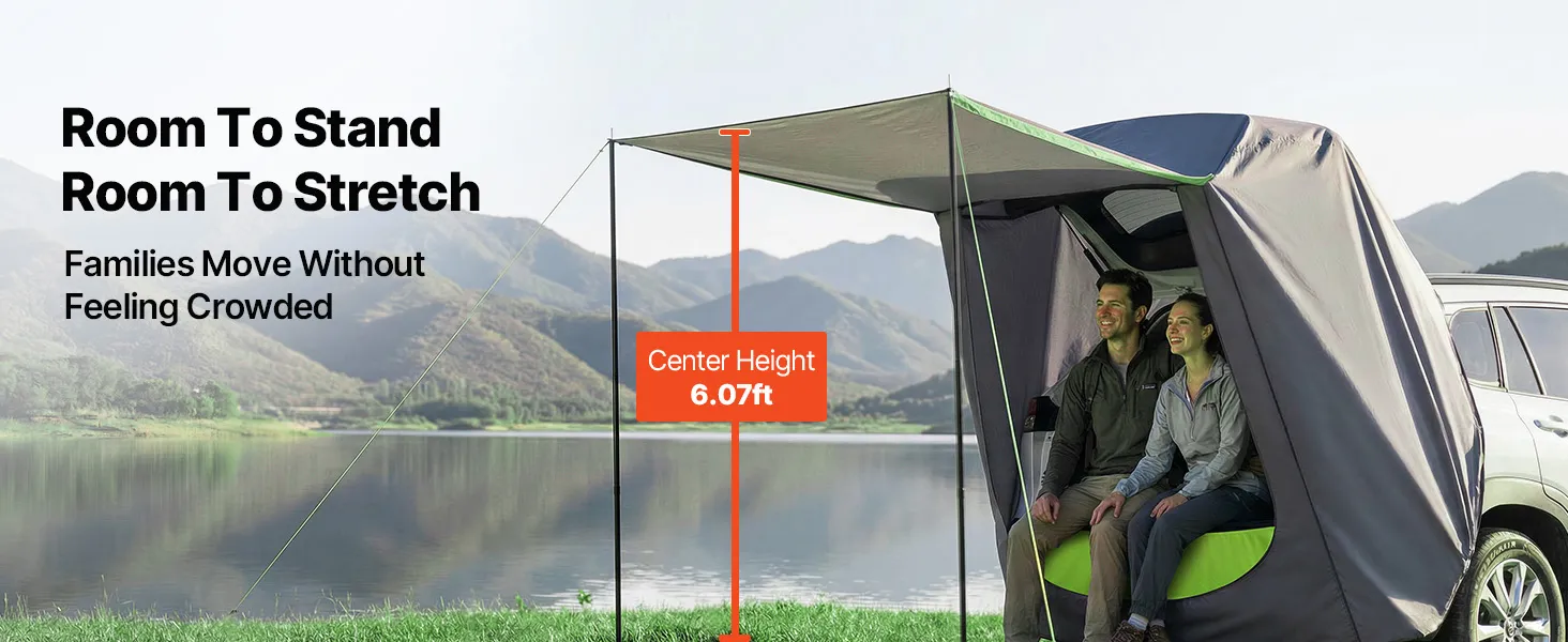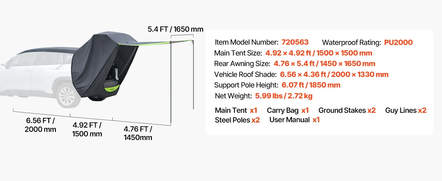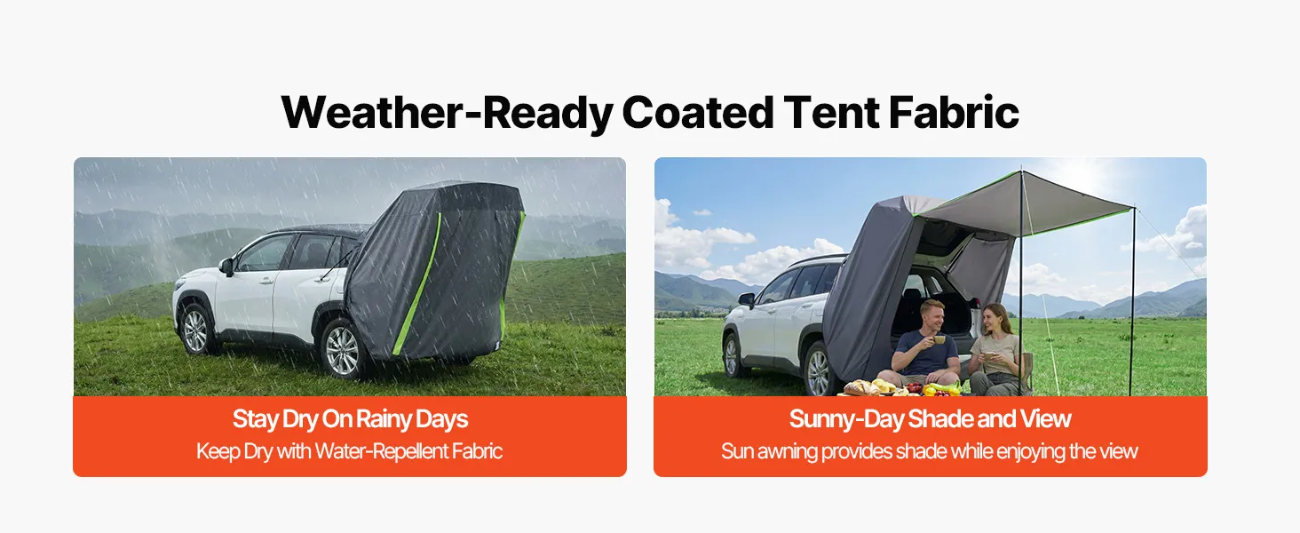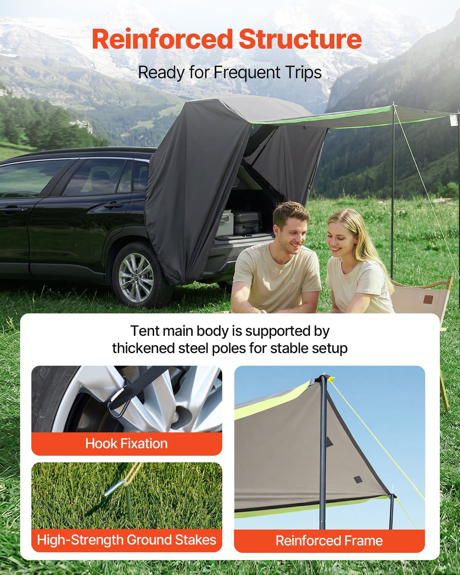VEVOR SUV Tent with Shade Awning, All-Season SUV Tailgate Tent, PU2000mm Waterproof Car Rear Hatch Camping Tents, Portable Sun Shade Tailgate Shelter with Carrying Bag for Outdoor Hiking