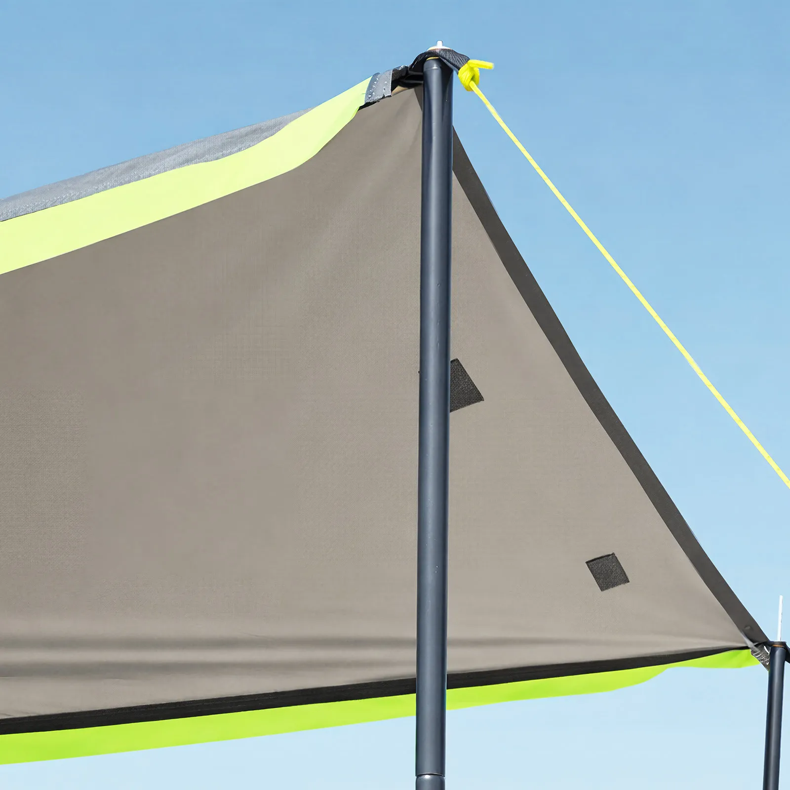 Extended shade awning design provides a larger shaded area, helping reduce direct sunlight and enhance comfort during outdoor relaxation.