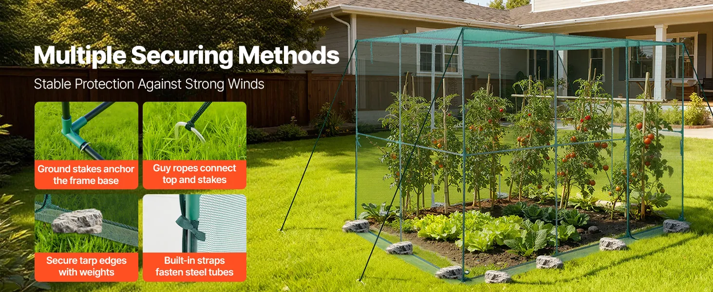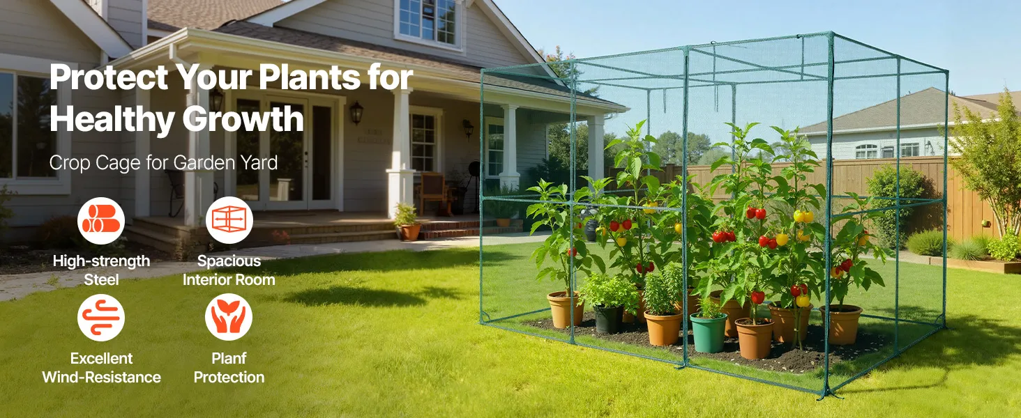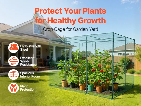 Our crop cages for garden features high-strength steel tubes and durable polyester mesh for a stable structure. It not only keeps animals away from the plants but also enhances wind resistance. With ample interior space, it ensures a flexible growing condition for plants.