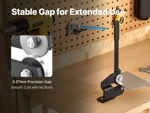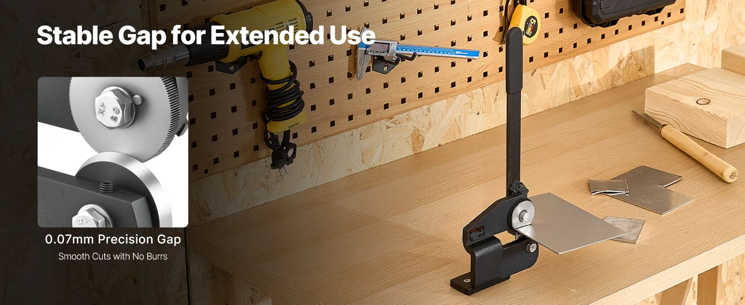 • Exact Blade Gap Control: With a precision gap of <0.07 mm, this metal shear easily passes paper test, ensuring ideal blade alignment and reducing burrs. Its upgraded reamed-hole screws maintain tight tolerances over time, ensuring long-term accuracy