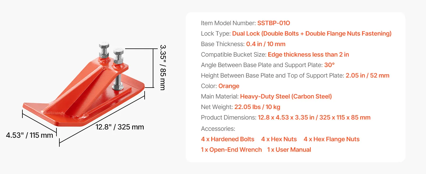 Made from quality steel with solid welding, this tractor bucket edge tamer stands up to harsh weather. The double-nut lock fits tightly on the bucket edge, avoiding detachment. Corrosion-resistant coating extends its lifespan for outdoor tasks.