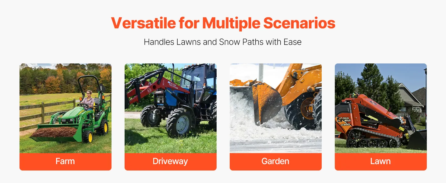 This bucket protector suits farms, driveways, gardens, and lawns. It lowers damage risk to surfaces when clearing snow, leaves, or debris, giving you more confidence on the job.