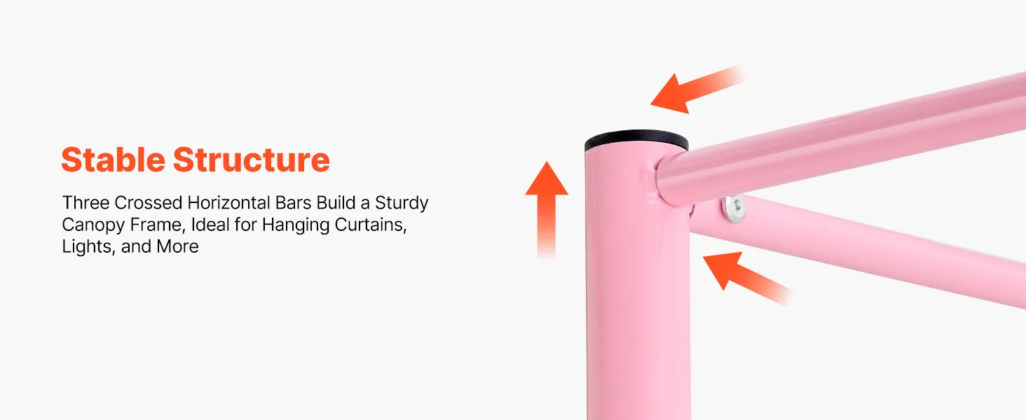A2: Абсолютно. Верхня рама має три поперечини, призначені для підвішування штор, гірлянд або москітних сіток. Конструкція стійка та легко витримує легкі прикраси. Для безпеки уникайте вішання важких предметів.