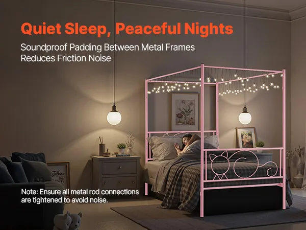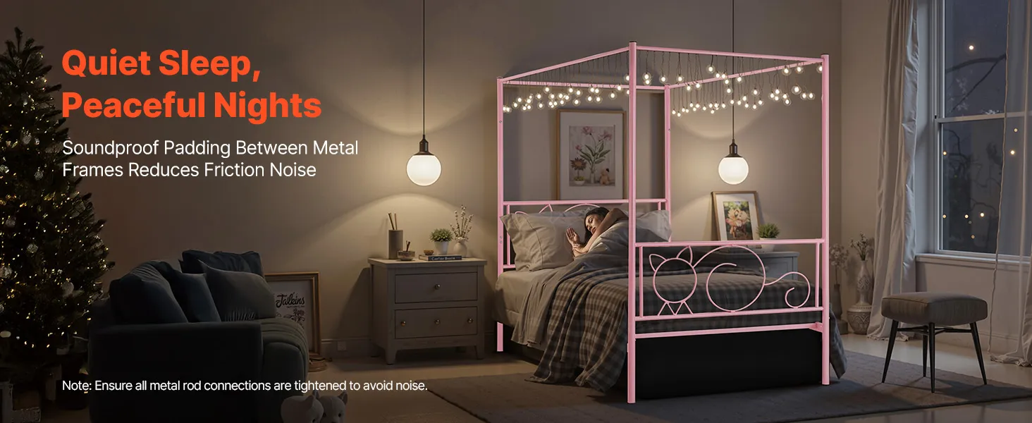 A1: Рама посилена потовщеними металевими трубами та багатоточковими з'єднаннями для підвищення стійкості. Між ключовими з'єднаннями додано шумопоглинаючі прокладки для зменшення шуму тертя. Якщо всі гвинти належним чином затягнуті під час встановлення, ліжко залишається тихим та стійким протягом усього використання.
