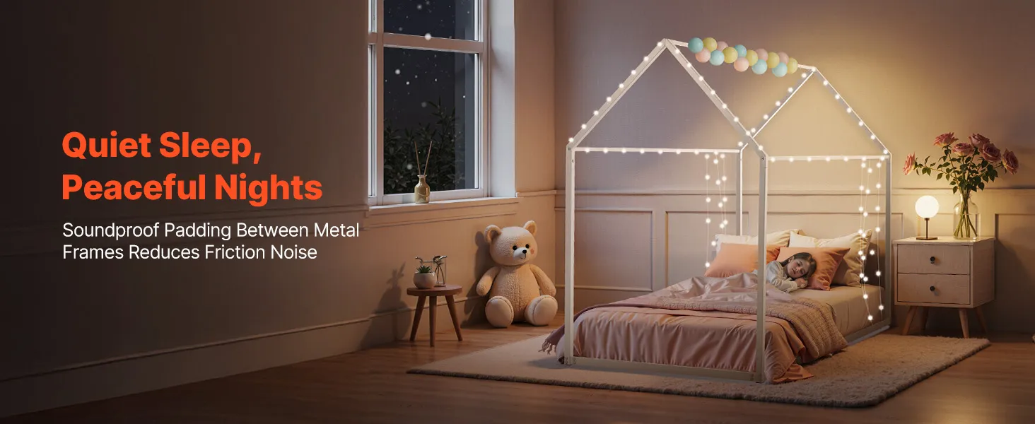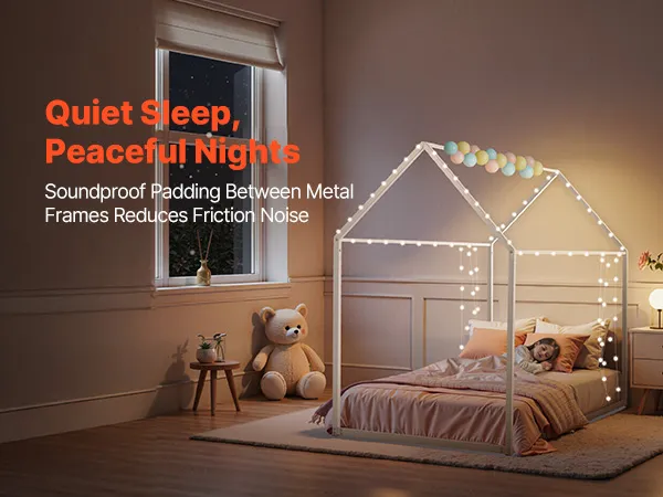 A1: Рама посилена потовщеними металевими трубами та багатоточковими з'єднаннями для підвищення стійкості. Між ключовими з'єднаннями додано шумопоглинаючі прокладки для зменшення шуму тертя. Якщо всі гвинти належним чином затягнуті під час встановлення, ліжко залишається тихим та стійким протягом усього використання.