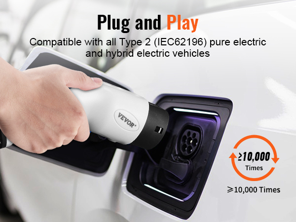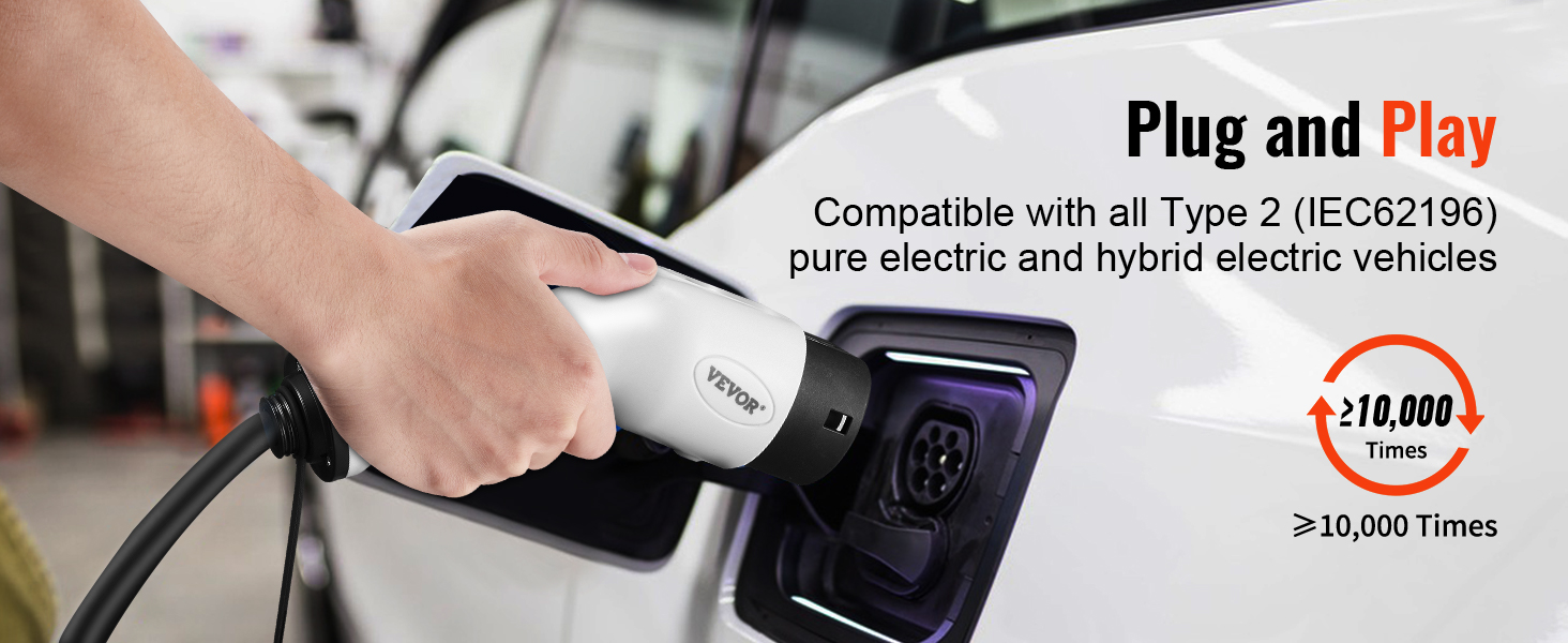 VEVOR EV car charging cable is compatible with all type 2 models, plug and play, and is a dependable travel companion. The storage bag solves all your travel and outdoor emergency charging problems. When you are ready to charge again, you will already know where to go!