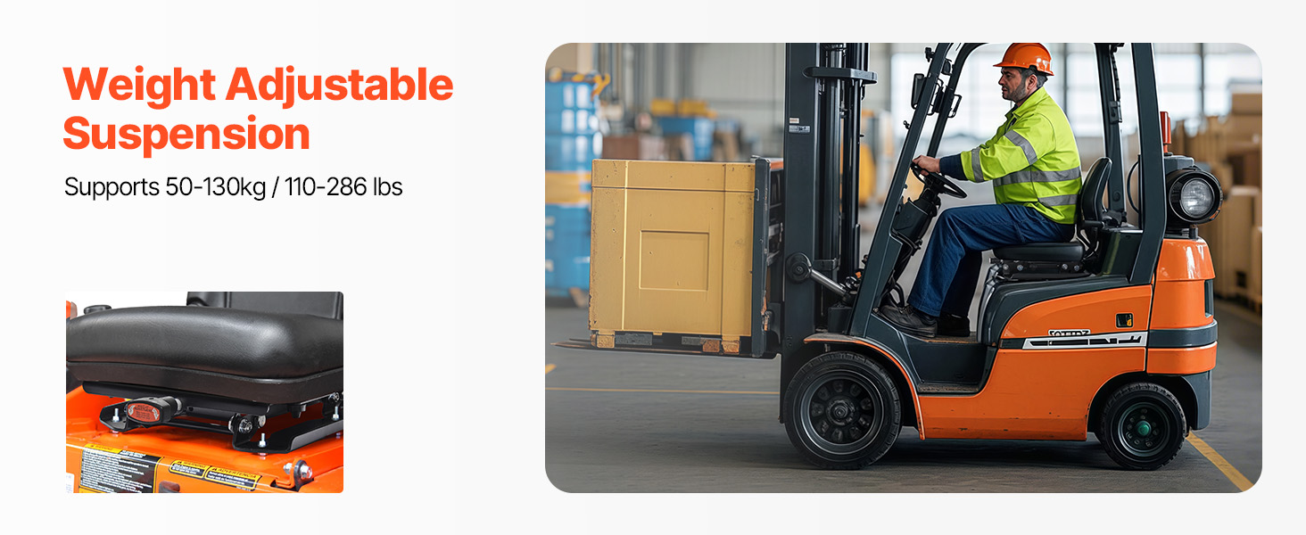 This forklift suspension kit supports 110-286lbs, features a 1.18" shock absorption stroke, effectively reducing back and waist fatigue. The 8 mounting holes make it ideal for forklifts, lawn mowers, etc. The 19.7in switch extension cord make installation flexible and quick.