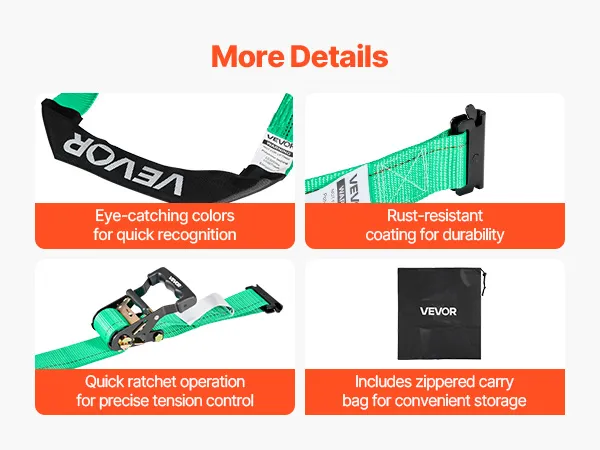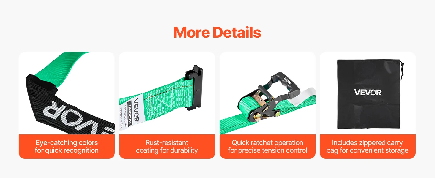• Convenient Buckle Design: This ratchet strap is compatible with various anchor points, enabling quick wheel fastening and release, saving time. It can minimize detachment risks during rough road transport