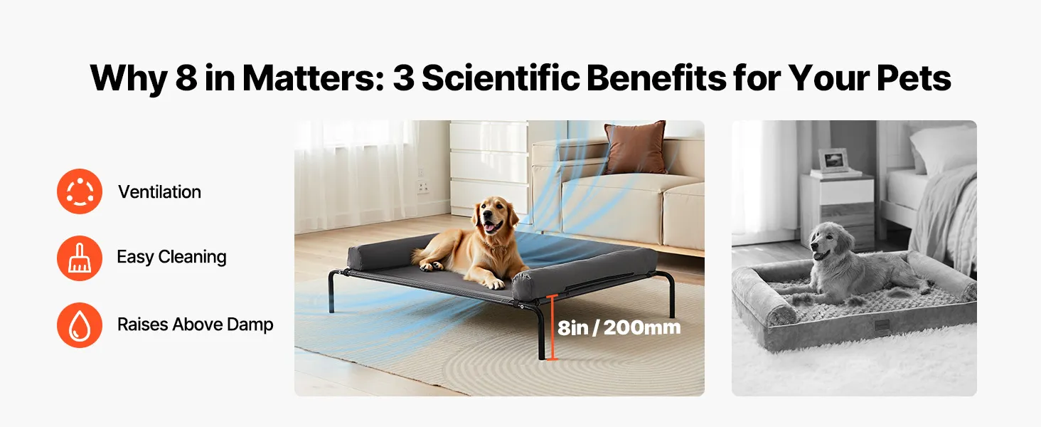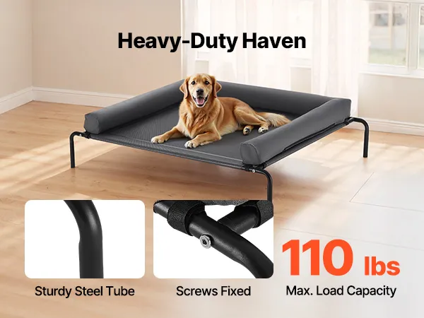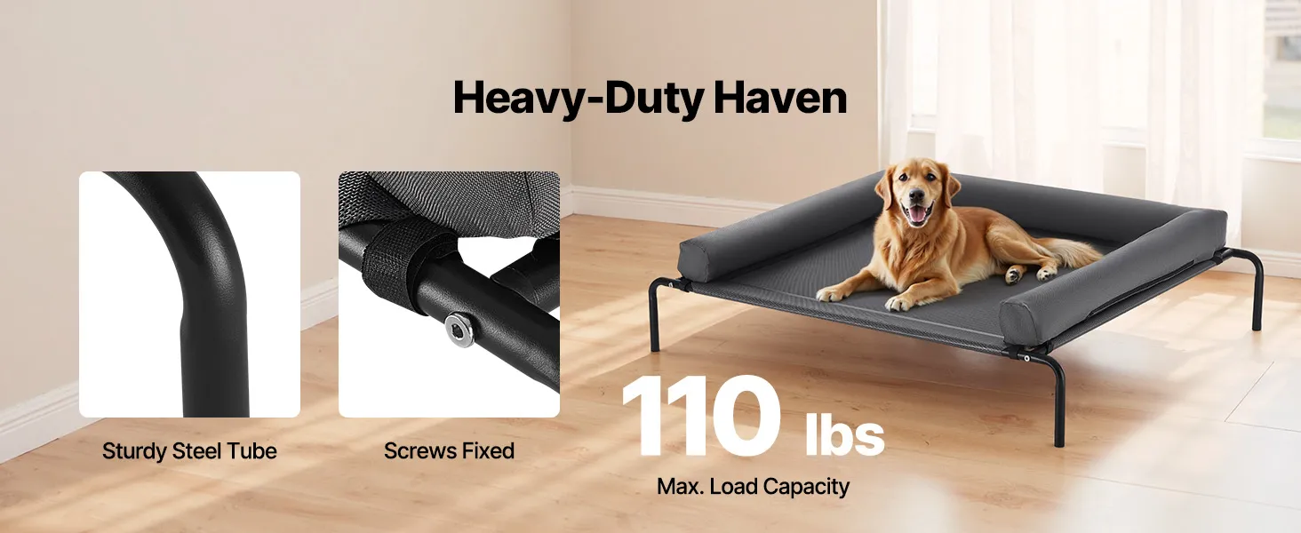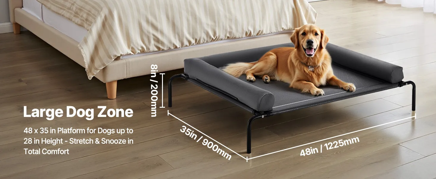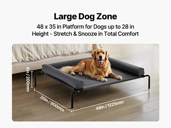 VEVOR Elevated Dog Bed for Large Dogs, Portable Raised Dog Cot with Washable Pillow, Indoor & Outdoor Pet Cooling Raised Hammock Bed with Steel Metal Frame and Breathable Teslin Mesh, XL, Gray