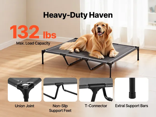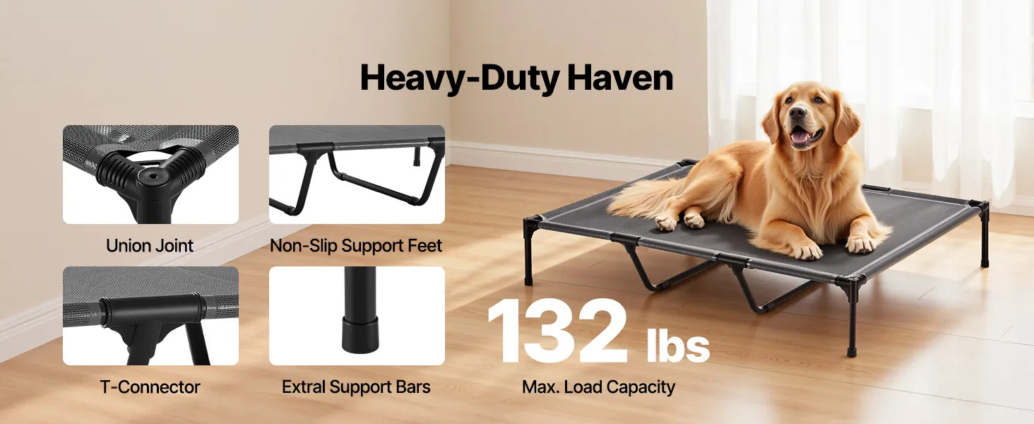 • Stable Weight Support: Thickened steel pipes combined with a double-support structure firmly support the weight of medium to large dogs. Breeds like Labradors and Golden Retrievers (up to 132 lbs / 60kg) can relax comfortably. It’s sturdy enough to accommodate 2-3 medium-sized dogs in a multi-pet household (total weight ≤ 60kg)