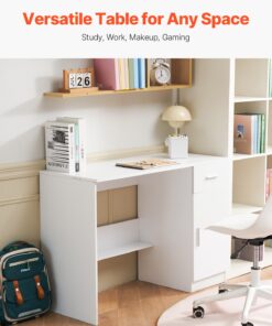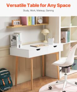 VEVOR дитячий письмовий стіл білого кольору з 2 шухлядами, MDF, компактний сучасний стіл для спальні, дому або офісу