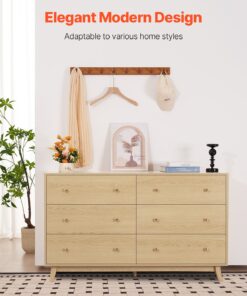 VEVOR 6-Drawer Wooden Dresser with Smooth Sliding Drawers and Anti-Tip Safety for Bedroom or Living Room