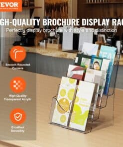 VEVOR 4-ярусна стійка для брошур з 8 кишенями, портативний алюмінієвий тримач для журналів і флаєрів