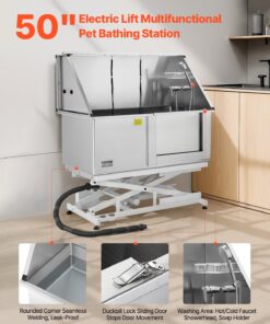 VEVOR Electric Lift Dog Washing Station 127cm – Stainless Steel Pet Grooming Tub with Showerhead, Filter & Left Door