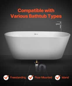 VEVOR Комплект Зливу для Окремо Стоячої Ванни з 2 Латунними Трубками та ABS Адаптером, Підходить для Підлогових і Острівних Ванн