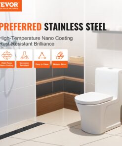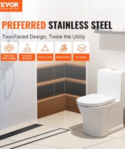 VEVOR 610mm Linear Shower Drain with Square Grate, Brushed 304 Stainless Steel, Hair Strainer & Leveling Feet, Silver