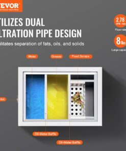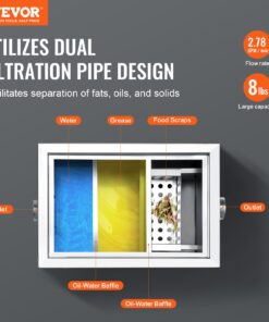 VEVOR 3,6 кг жироуловлювач з нержавної сталі, 2,8 GPM з боковим входом, під мийку, для кухні та ресторану