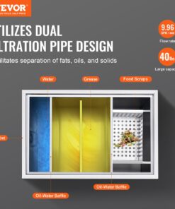 VEVOR 40L Stainless Steel Commercial Grease Trap, 38L/min Flow, Under Sink Interceptor for Restaurant & Kitchen Use