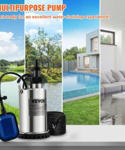 VEVOR 550W занурювальний водяний насос 9500л/год, 10м шнур, поплавковий вимикач, нержавіюча сталь, для басейнів, затоплених зон, зрошення
