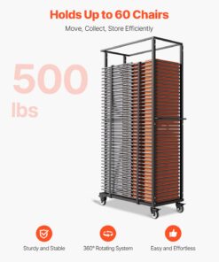 Стійка для складних стільців VEVOR на 60 стільців, вантажопідйомність 227 кг, металева візок з фіксаторами, чорна