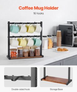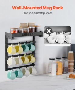 Настінний тримач для кружок з 12 гачками та полицею, вуглецева сталь, чорний, економить простір