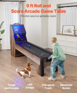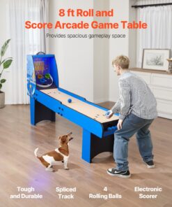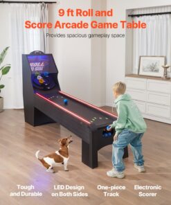 VEVOR 2,74 м класичний skeeball аркадний ігровий стіл з LED табло, звуком і 4 кулями – для дому