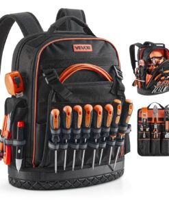 VEVOR Electrician Tool Backpack with 65 Pockets, Laptop Compartment, 21 Tools, Waterproof Base, 33×19.5×52 cm