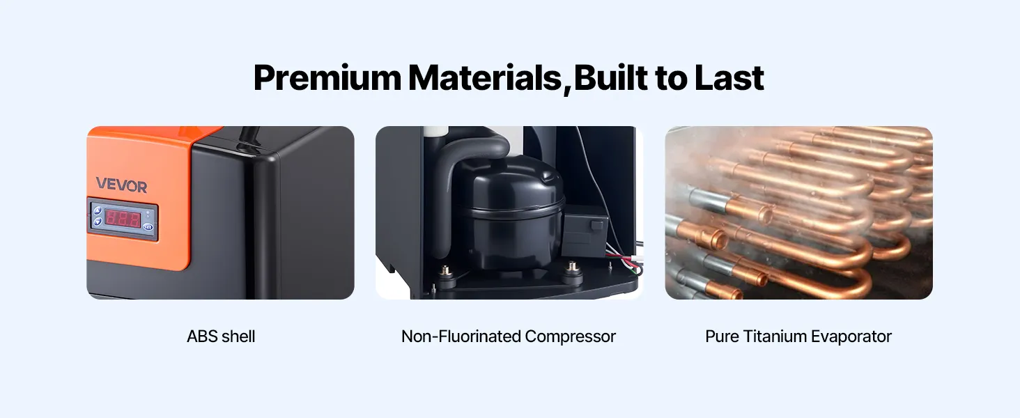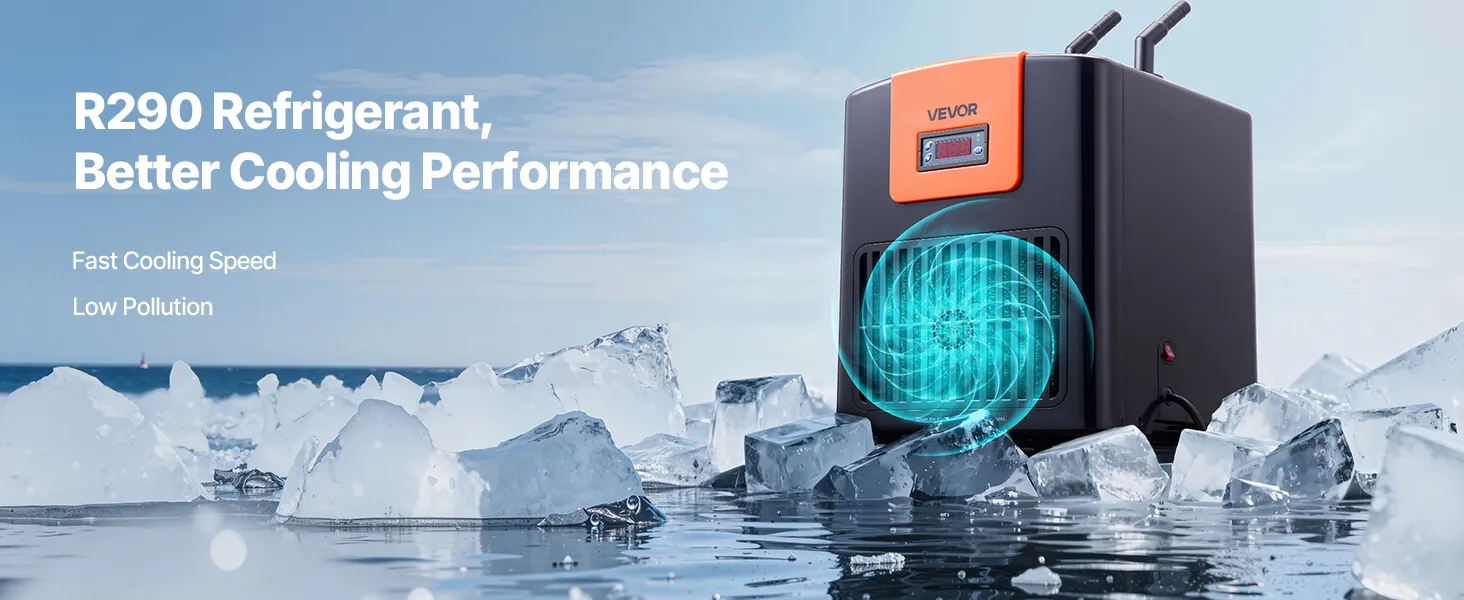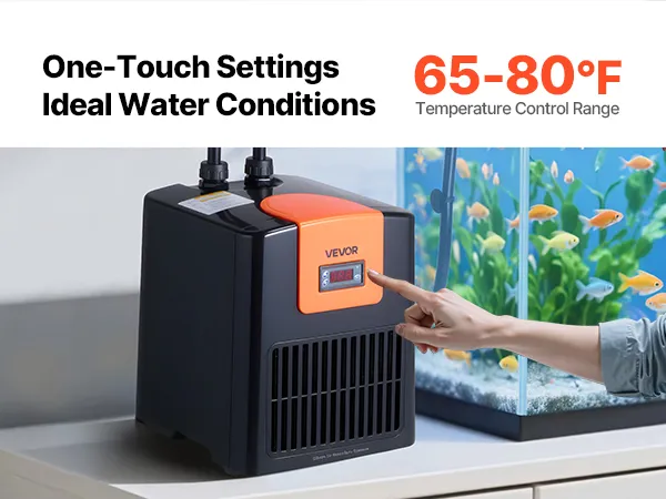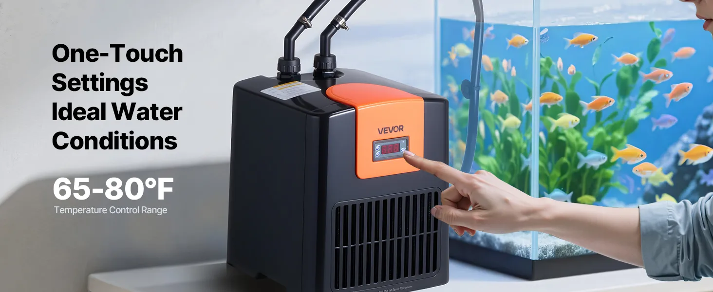 VEVOR Aquarium Chiller 200L, 0.1 HP Water Chiller for Hydroponics, Fast Cooling for Fish Tank,Axolotl,Coral Reef,Quiet Refrigeration Compressor, Titanium Evaporator,Complete Fittings