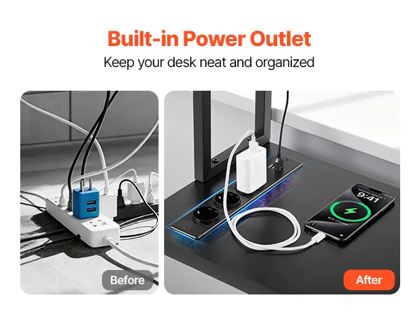 • Built-in Power Outlet: Easily charge your devices with 3 AC and 2 USB ports, keeping your gaming or home office desk clutter-free and ready for work or play
