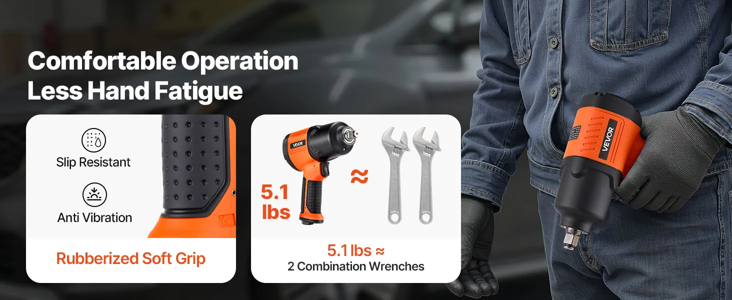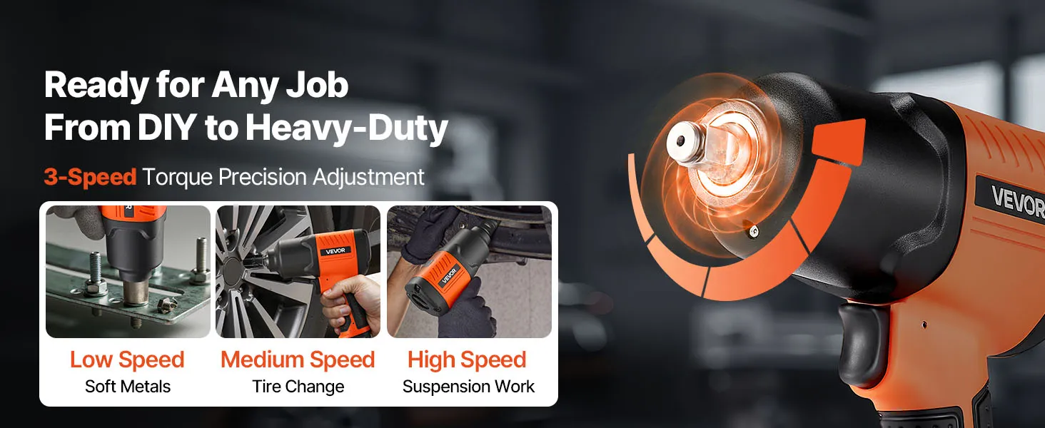 VEVOR Air Impact Wrench, 1/2" Drive Pneumatic Impact Wrench Up to 1490N.m Reverse Torque, 7500RPM 4-Speed Adjustable & Lightweight Pneumatic Gun for Auto Repairs and Maintenance