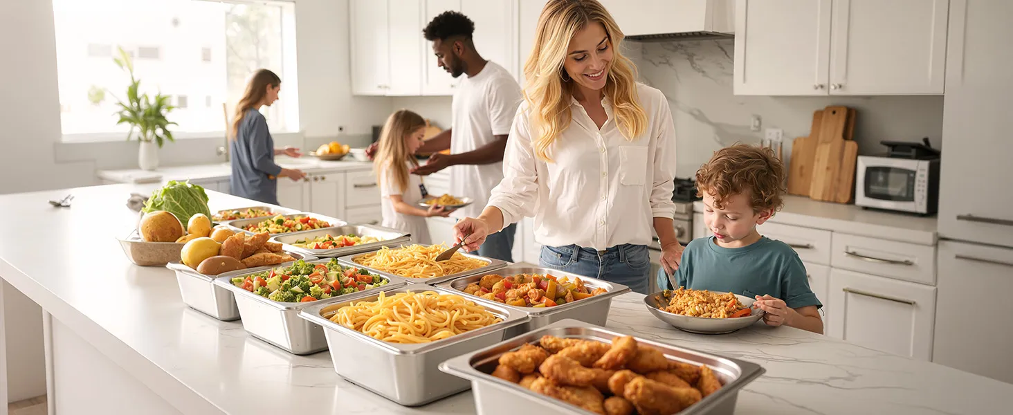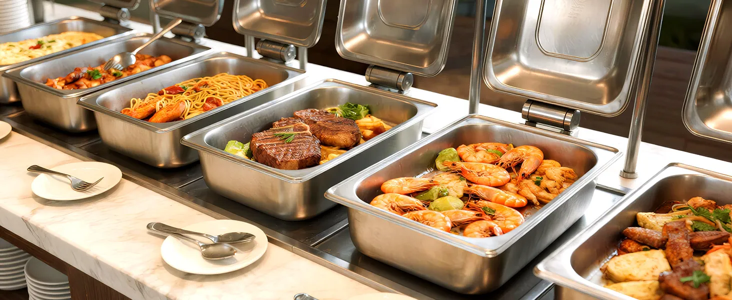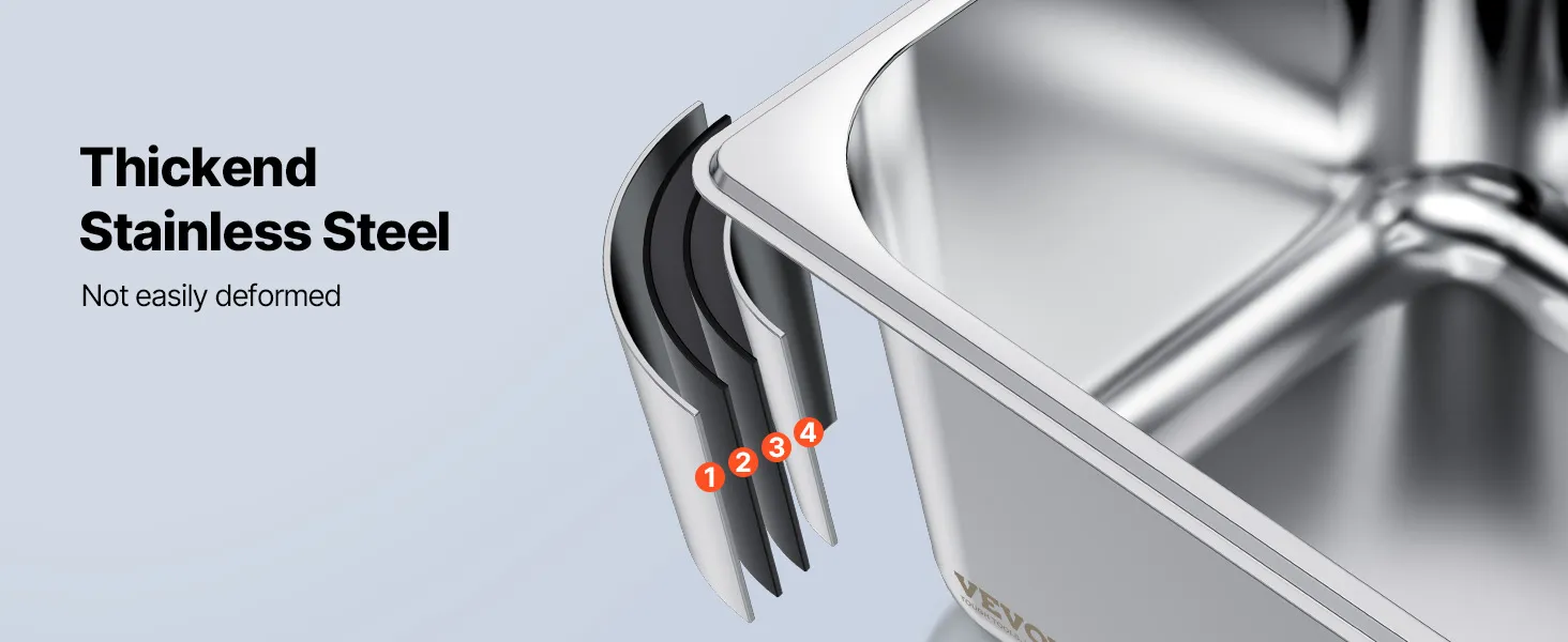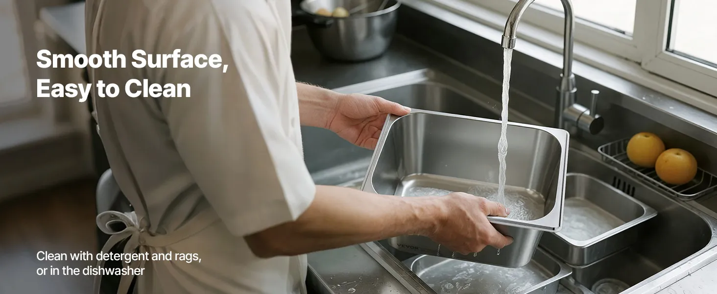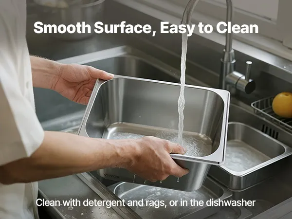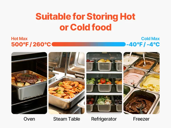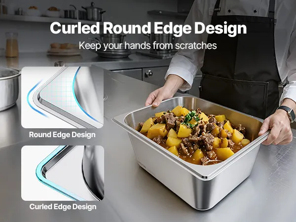 This steam tray is made from commercial-grade 22-gauge SS201 stainless steel, offering strength and rust resistance. The 1/2 half-size pan, 6 inches deep, 2-pack with lids design meets daily cooking needs and is perfect for cooking, storing, and displaying food such as meats, vegetables, fruits, and even ice cream.