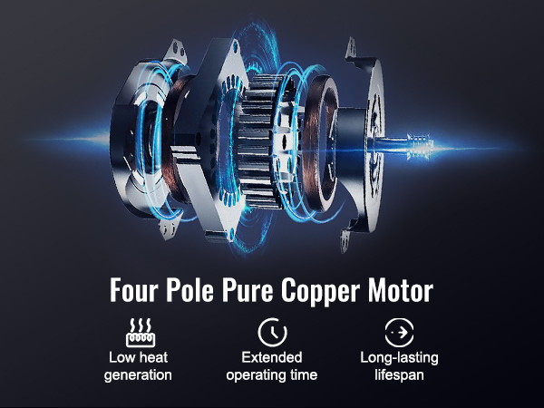 The cooling fan will quickly dissipate heat while running for a long time. This fan caver guards chips and objects against dropping into the motor and causing accidents.