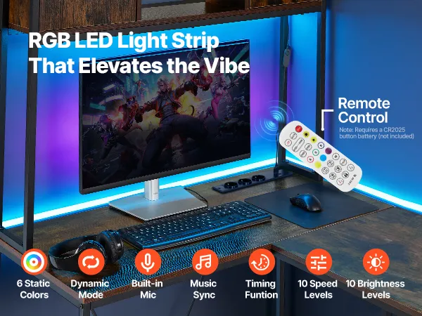 Built-in colorful RGB light strip with multiple lighting modes allows you to personalize your gaming desk ambiance, creating an immersive atmosphere for gaming or work.