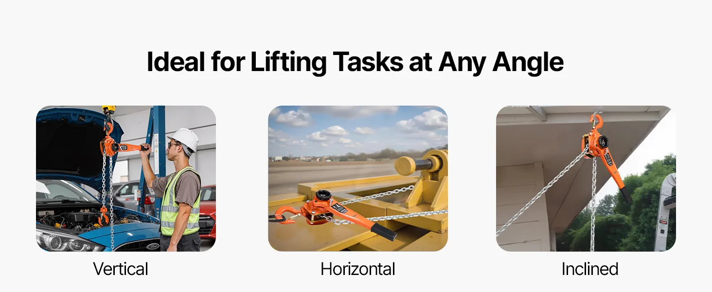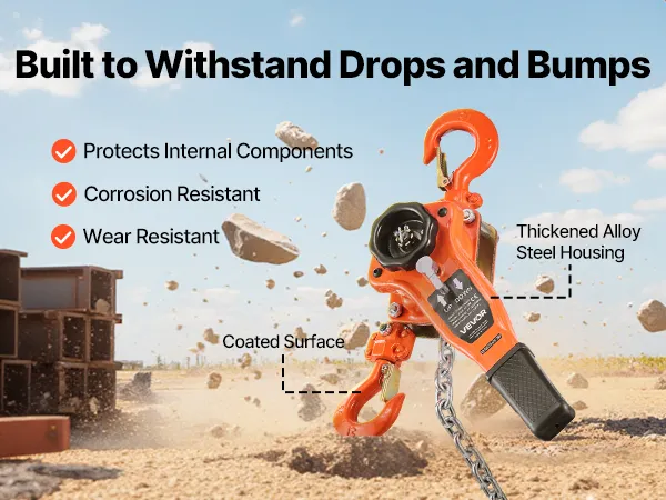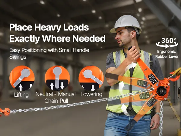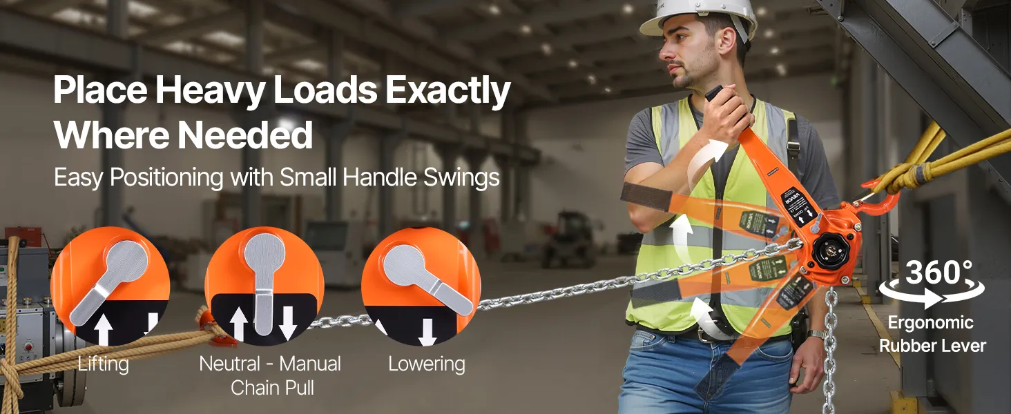 This manual lever hoist handle galvanized G80 chain handle tough jobs like moving logs, machinery, or steel beams. Weston-style dual pawl brakes and a guided chain slot ensure smooth, secure operation.
