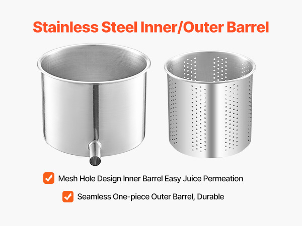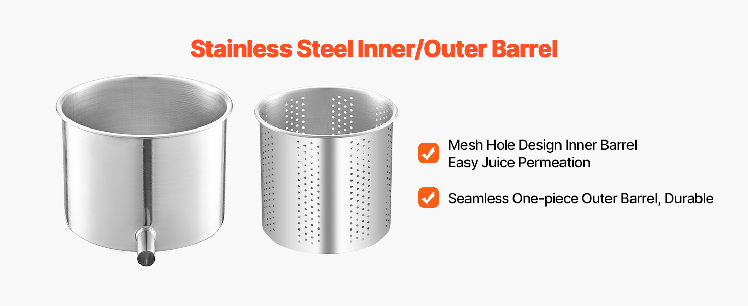 VEVOR 0.44 Gal/1.65L Fruit Wine Press, 2 Stainless Steel Barrels, Manual Juice Maker, Cider Apple Grape Tincture Honey Olive Oil Making Press with T-Handle for Outdoor Kitchen Home