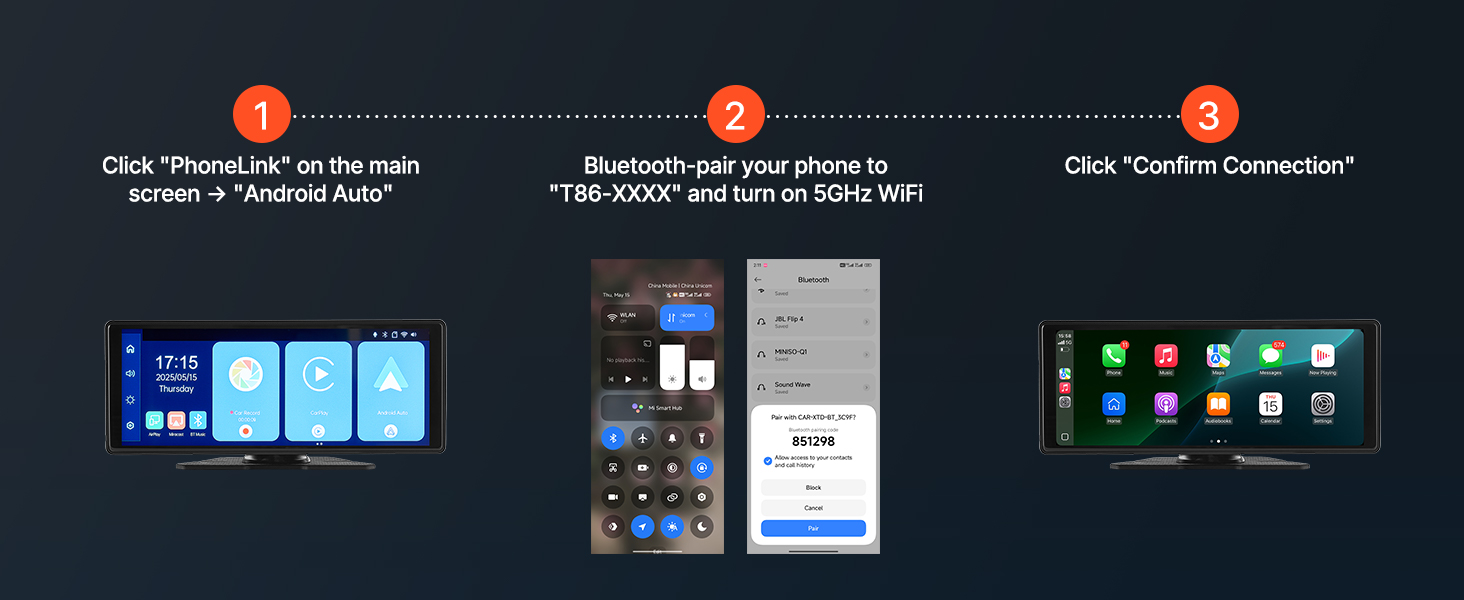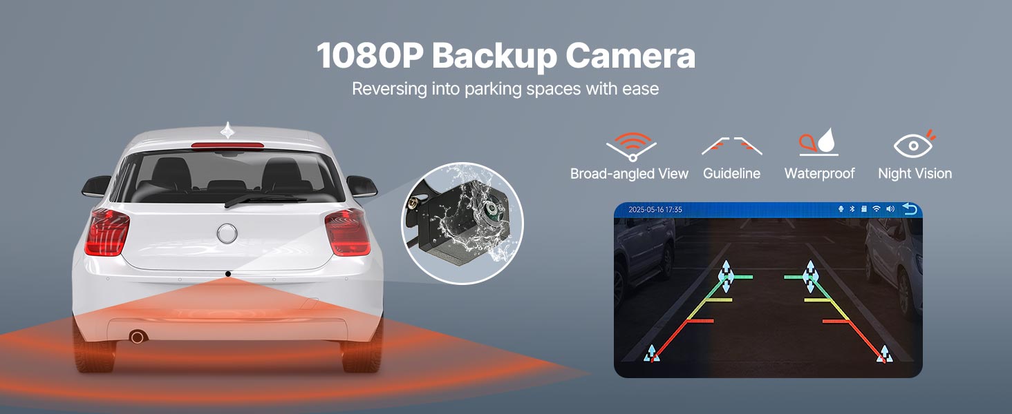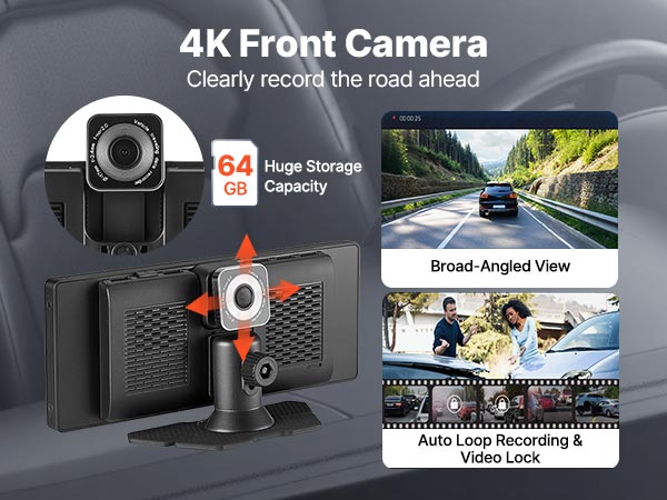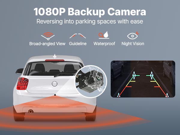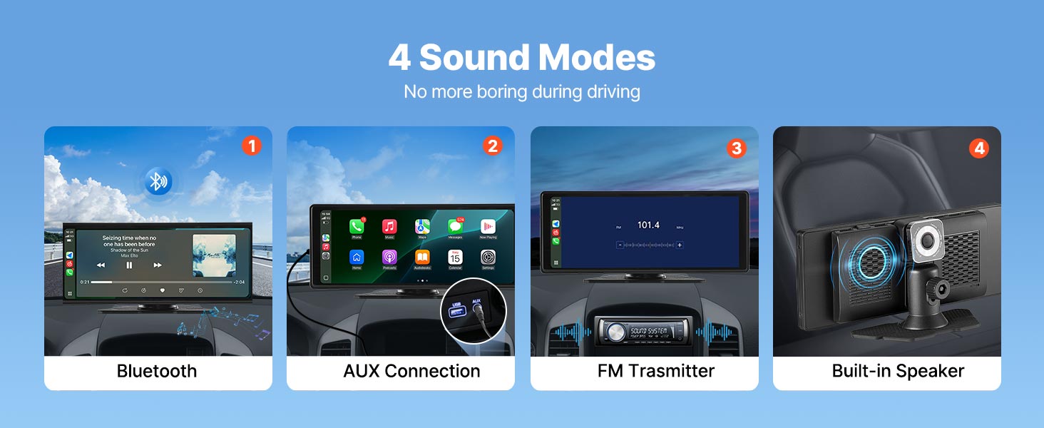 VEVOR Wireless Car Stereo, 254 mm HD Portable Radio Touch Screen with Apple CarPlay and Android Auto, CarPlay Screen with Front & Backup Cameras, Voice Control, Mirror Link, Bluetooth, GPS Navigation