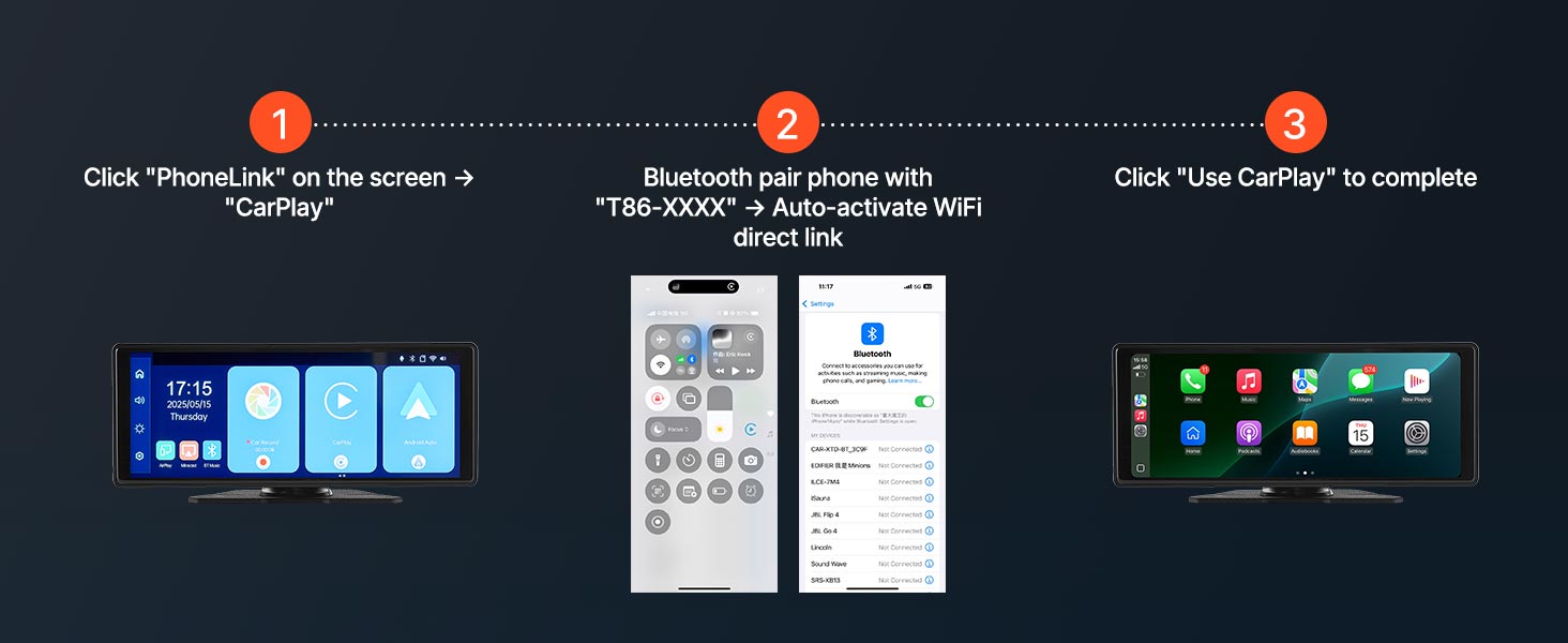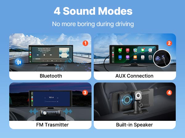 Language, time, date, EQ sound effects, and more settings can be adjusted in the Apple car play screen.