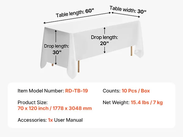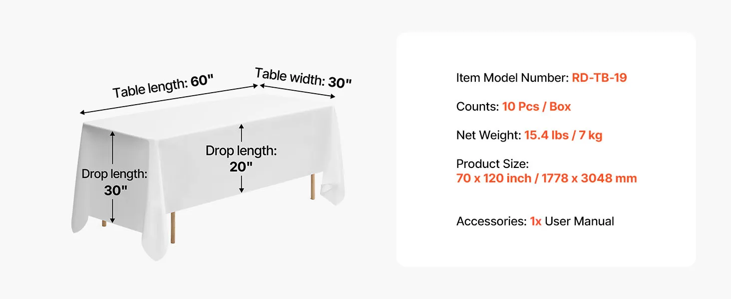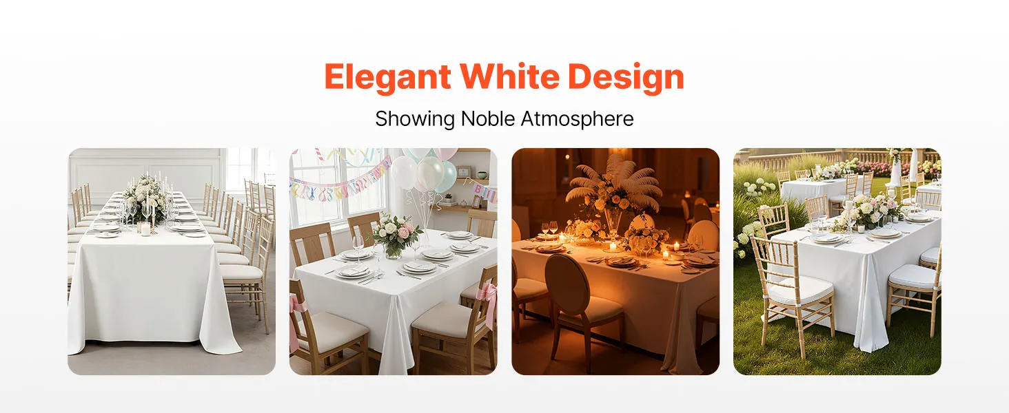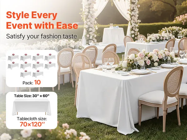 VEVOR White Tablecloths for Rectangle Tables, 10 Pack, 70 x 120 Inches, Reusable and Machine Washable Table Clothes, Wrinkle-Resistant Polyester Fabric Table Covers for Wedding, Party, Banquet