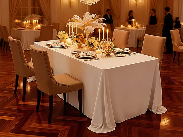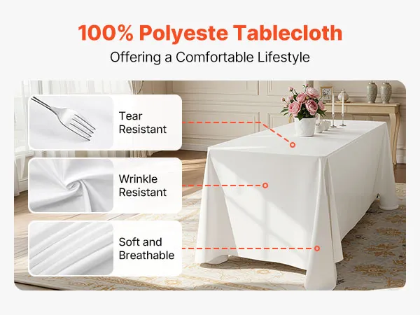 Made from premium polyester fabric, this elegant tablecloth enhances the overall look of your table. Ideal for weddings, graduations, birthdays, and other special occasions, it adds a touch of refinement and style to your event.