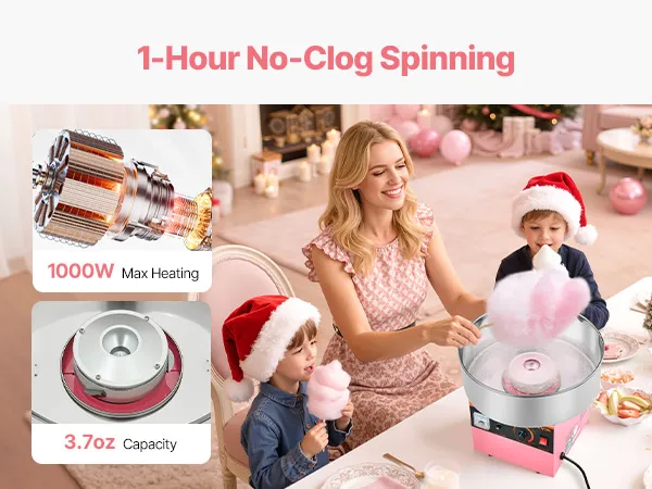 VEVOR Cotton Candy Machine Commercial, 1000W Electric Candy Floss Maker, Easy Use with 38cm Stainless Steel Bowl and Sugar Scoop, Makes Hard Candy for Home Kids Birthday, Family Party, Pink