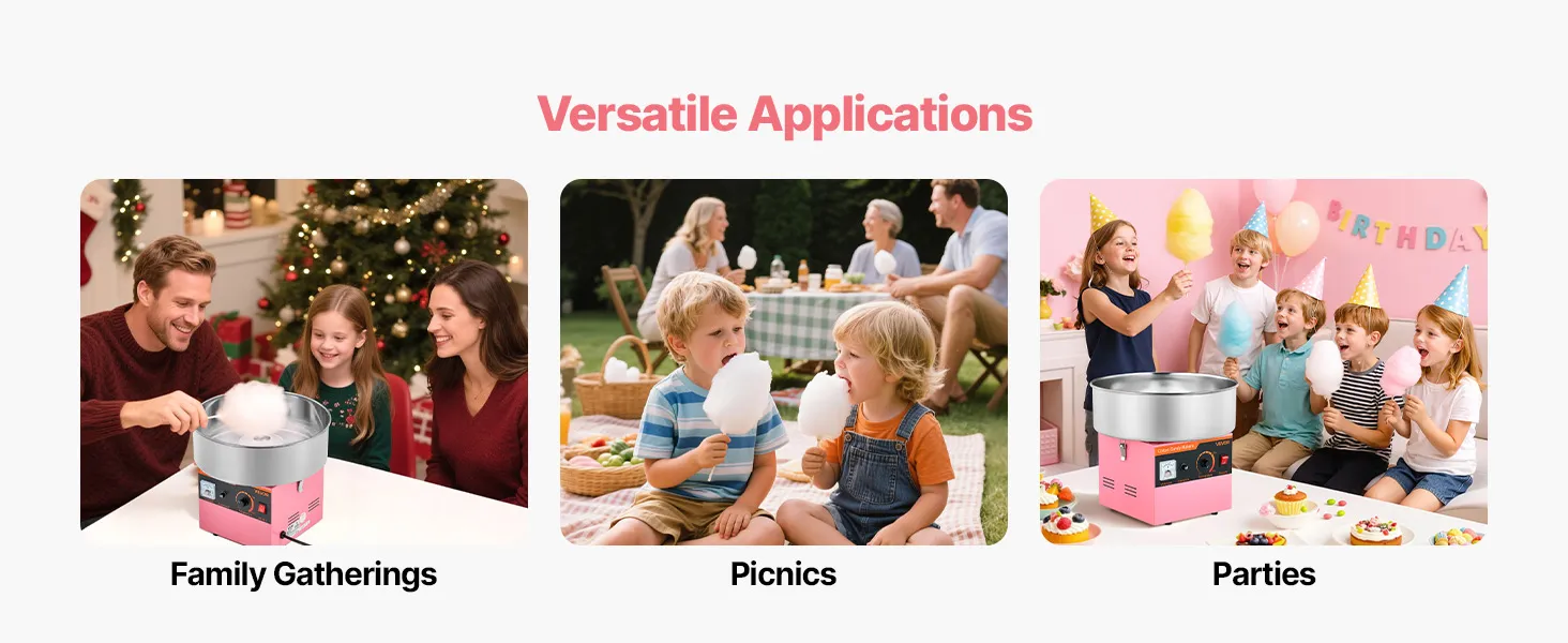 Compact electric floss maker Magic—turn family moments into sweet memories! Ready for a party, it's the key to effortless joy—wherever smiles are served!