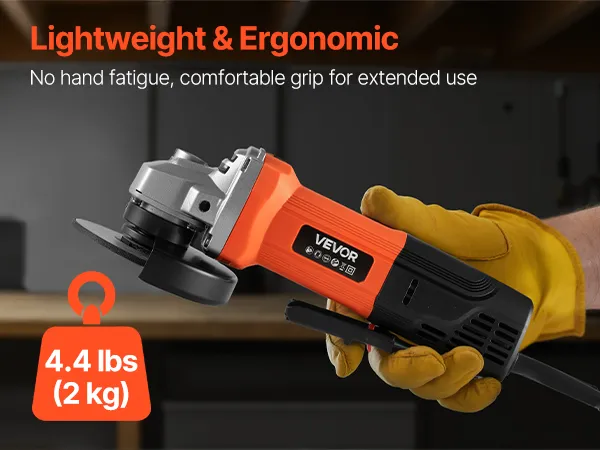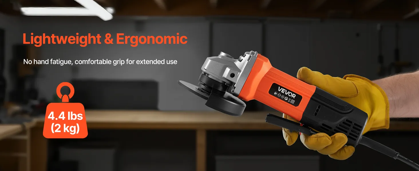 The compact body and lightweight build ensure a secure, fatigue-free grip, and the rubberized handle enhances comfort and control during extended grinding or cutting tasks.