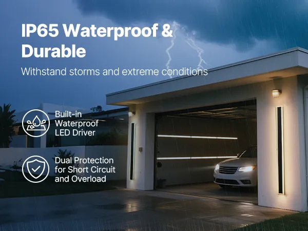 With IP65 waterproof, our outdoor wall light fixture has excellent waterproof and airtight performance, withstanding extreme weather conditions like storms and strong winds. Built-in waterproof LED driver features short-circuit and overload protection, ensuring reliable operation.
