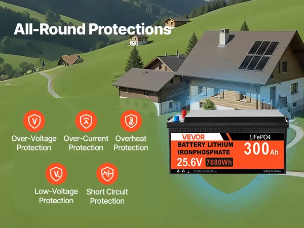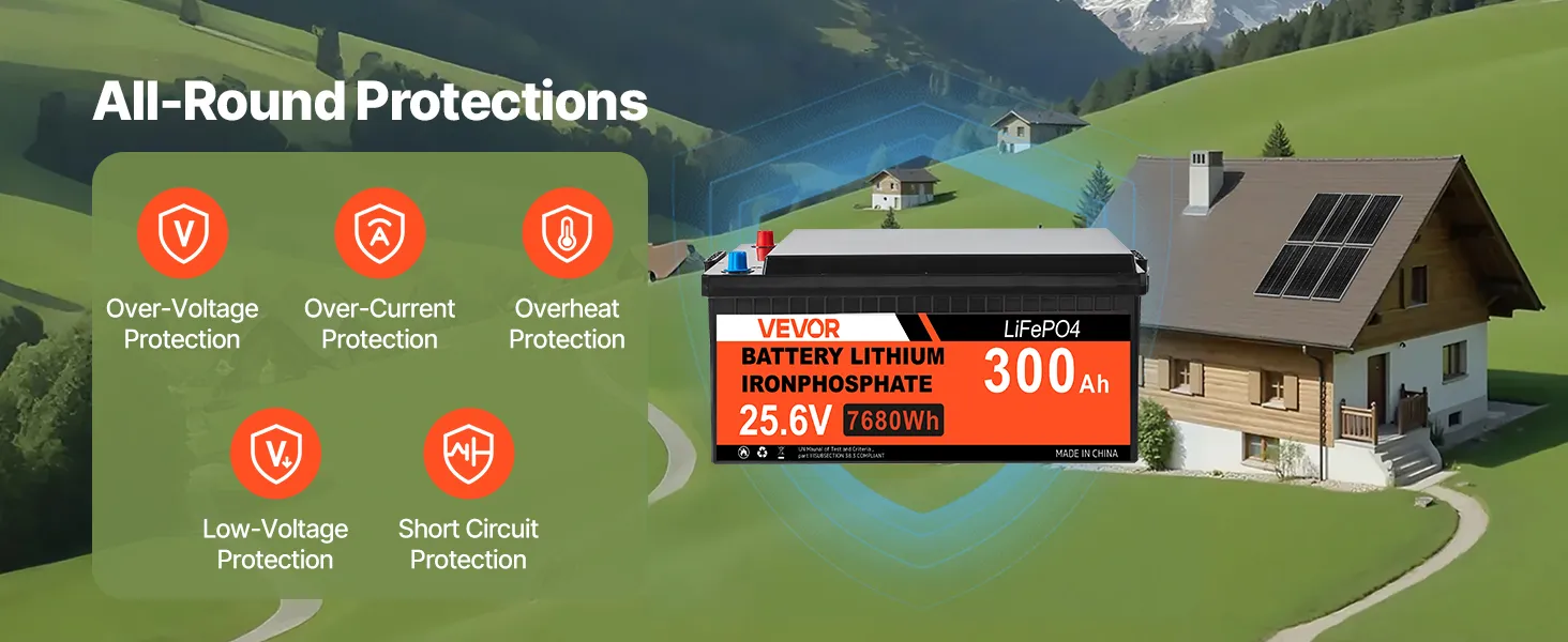 High-quality LiFePO₄ battery supports 4,000–15,000 deep charge cycles. Built-in BMS provides intelligent protection and stable output, delivering lasting power for off-grid applications.
